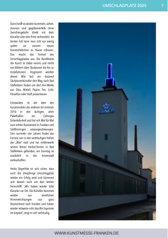 Heiko Bayerlieb ist sich sicher, dass auch der diesjährige Umschlagplatz wieder ein Erfolg wird und kümmert sich derzeit noch um den letzten Feinschliff. „Wir haben wieder tolle Künstler vor Ort. Die Künstler kommen wieder aus sämtlichen Himmelrichtungen aus ganz Deutschland nach Franken und haben wieder teilweise echt skurille Exponate im Gepäck“, zeigt er sich vorfreudig.