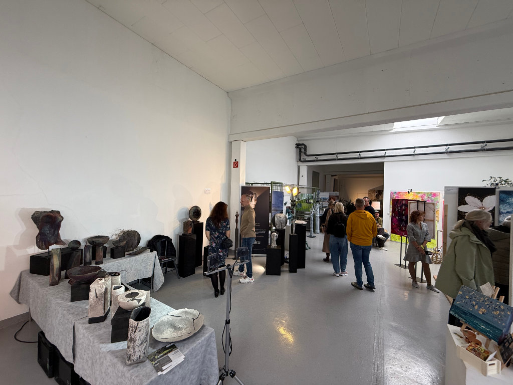 Die Kunstverkaufsmesse Umschlagplatz fand im Jahr 2025 zum fünften Mal in den Hallen der Kaiser Porzellanmanufaktur in Bad Staffelstein statt. Hier einige Eindrücke des Messegeschehens am Wochenende vom 27. und 28. September:
